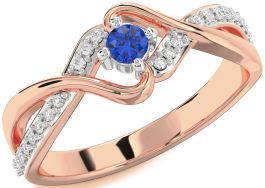 Diamond Blue Sapphire Rose Gold Silver Round Promise Ring