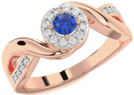 Diamond Blue Sapphire Rose Gold Silver Halo Round Promise Ring