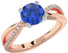 Diamond Blue Sapphire Rose Gold Silver Round Solitaire Engagement Ring