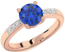 Diamond Blue Sapphire Rose Gold Silver Round Solitaire Engagement Ring