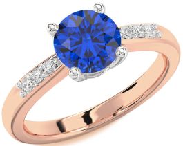Diamond Blue Sapphire Rose Gold Silver Round Solitaire Engagement Ring