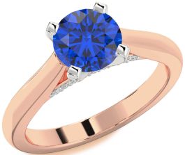 Diamond Blue Sapphire Rose Gold Silver Round Solitaire Engagement Ring
