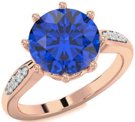 Diamond Blue Sapphire Rose Gold Silver Round Solitaire Engagement Ring