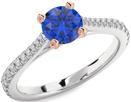 Diamond Blue Sapphire Rose Gold Silver Round Solitaire Pave Engagement Ring