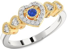 Diamond Blue Sapphire Silver & 10K gold Heart Promise Ring