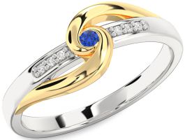 Diamond Blue Sapphire Silver & 10K gold Knot Round Promise Ring
