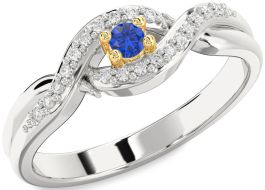 Diamond Blue Sapphire Silver & 10K gold Knot Round Pave Promise Ring
