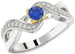 Diamond Blue Sapphire Silver & 10K gold Infinity Round Promise Ring