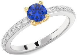Diamond Blue Sapphire Silver & 10K gold Round Solitaire Pave Engagement Ring
