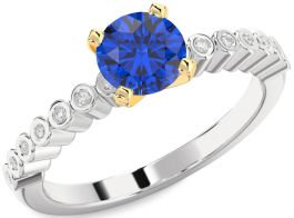 Diamond Blue Sapphire Silver & 10K gold Round Solitaire Engagement Ring