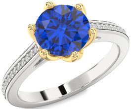 Diamond Blue Sapphire Silver & 10K gold Round Solitaire Pave Engagement Ring