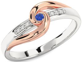 Diamond Blue Sapphire Silver & 10K Rose Gold Knot Round Promise Ring