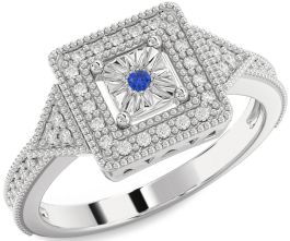 Diamond Blue Sapphire Silver Halo Round Promise Ring