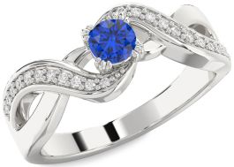 Diamond Blue Sapphire Silver Infinity Round Promise Ring