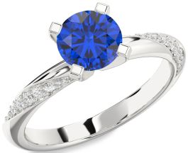 Diamond Blue Sapphire Silver Round Solitaire Engagement Ring