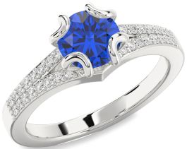 Diamond Blue Sapphire Silver Round Solitaire Pave Engagement Ring