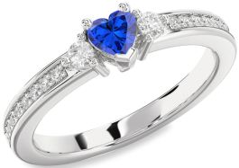 Diamond Blue Sapphire White Gold Heart Three Stone Engagement Ring