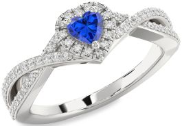 Diamond Blue Sapphire White Gold Heart Pave Promise Ring