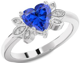 Diamond Blue Sapphire White Gold Heart Solitaire Engagement Ring