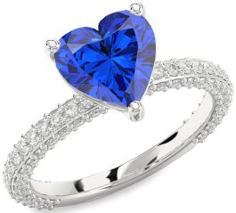 Diamond Blue Sapphire White Gold Heart Solitaire Pave Engagement Ring