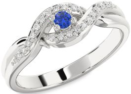 Diamond Blue Sapphire White Gold Knot Round Pave Promise Ring