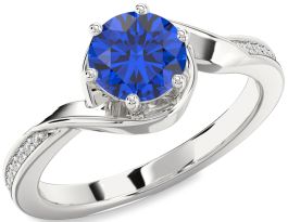 Diamond Blue Sapphire White Gold Round Solitaire Engagement Ring