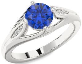 Diamond Blue Sapphire White Gold Round Solitaire Engagement Ring