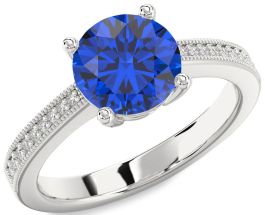Diamond Blue Sapphire White Gold Round Vintage Pave Engagement Ring