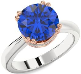 Diamond Blue Sapphire White Rose Gold Halo Round Solitaire Engagement Ring