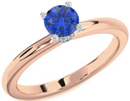 Diamond Blue Sapphire White Rose Gold Halo Round Solitaire Engagement Ring