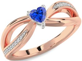 Diamond Blue Sapphire White Rose Gold Heart Promise Ring