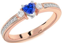 Diamond Blue Sapphire White Rose Gold Heart Three Stone Engagement Ring