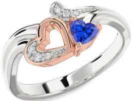 Diamond Blue Sapphire White Rose Gold Heart Promise Ring