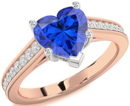 Diamond Blue Sapphire White Rose Gold Heart Solitaire Pave Engagement Ring