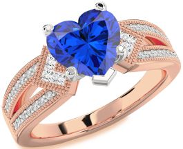 Diamond Blue Sapphire White Rose Gold Heart Vintage Engagement Ring