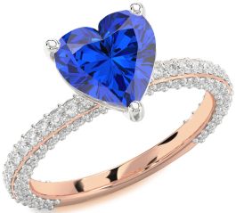 Diamond Blue Sapphire White Rose Gold Heart Solitaire Pave Engagement Ring