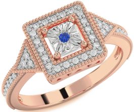 Diamond Blue Sapphire White Rose Gold Halo Round Promise Ring