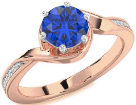 Diamond Blue Sapphire White Rose Gold Round Solitaire Engagement Ring