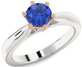 Diamond Blue Sapphire White Rose Gold Round Solitaire Engagement Ring