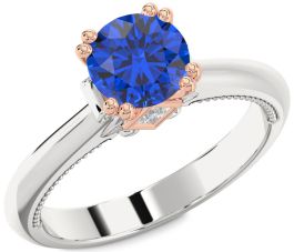 Diamond Blue Sapphire White Rose Gold Round Solitaire Engagement Ring