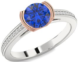 Diamond Blue Sapphire White Rose Gold Round Solitaire Pave Engagement Ring