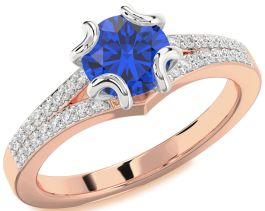 Diamond Blue Sapphire White Rose Gold Round Solitaire Pave Engagement Ring