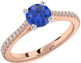 Diamond Blue Sapphire White Rose Gold Round Solitaire Pave Engagement Ring