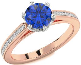 Diamond Blue Sapphire White Rose Gold Round Solitaire Pave Engagement Ring