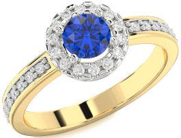 Diamond Blue Sapphire White Yellow Gold Halo Round Pave Engagement Ring
