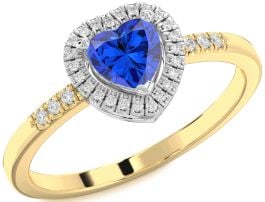 Diamond Blue Sapphire White Yellow Gold Heart Halo Engagement Ring