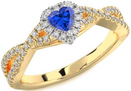 Diamond Blue Sapphire White Yellow Gold Heart Pave Promise Ring