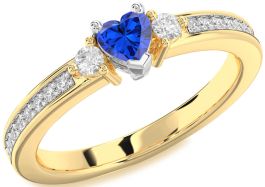 Diamond Blue Sapphire White Yellow Gold Heart Three Stone Engagement Ring