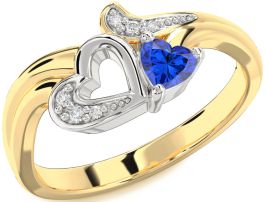 Diamond Blue Sapphire White Yellow Gold Heart Promise Ring