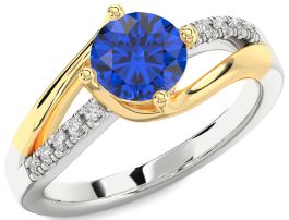 Diamond Blue Sapphire White Yellow Gold Round Solitaire Engagement Ring
